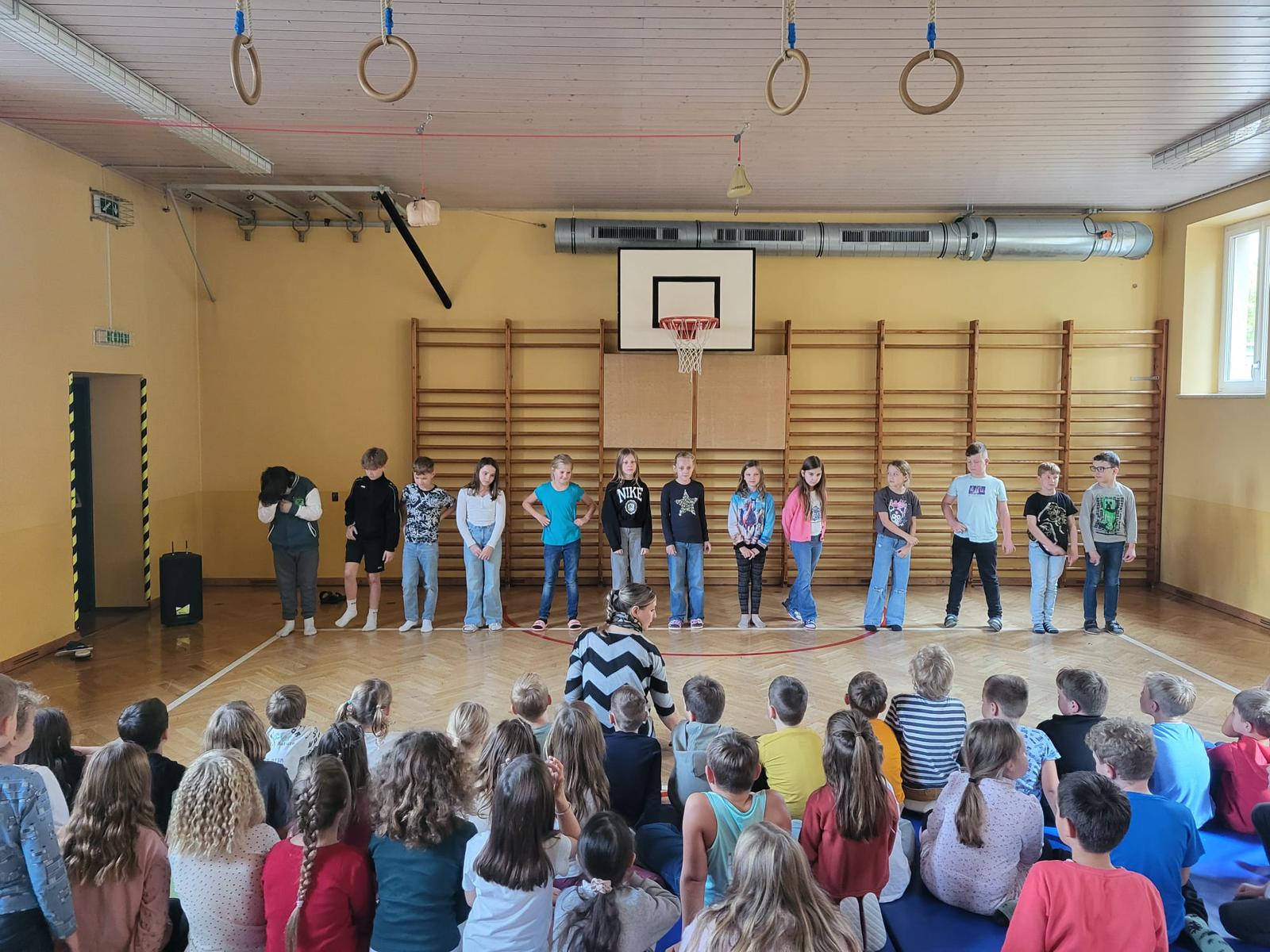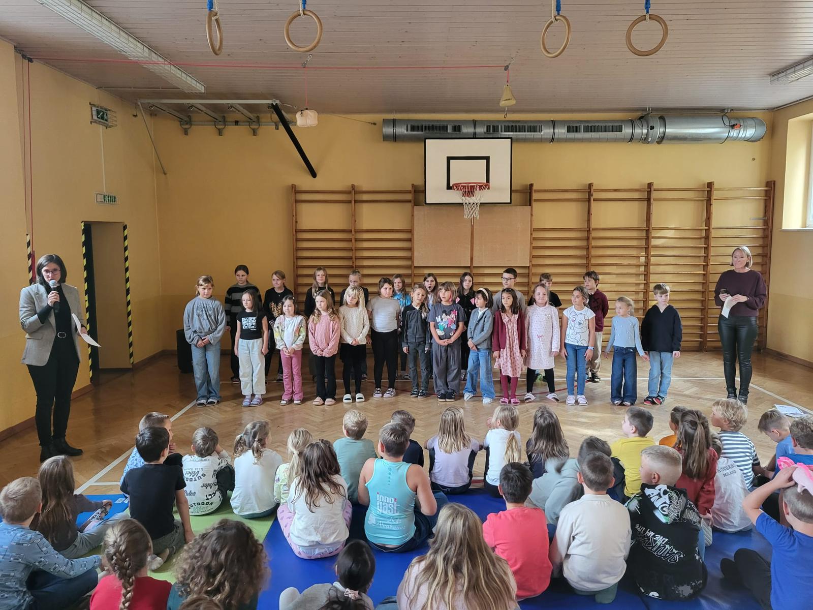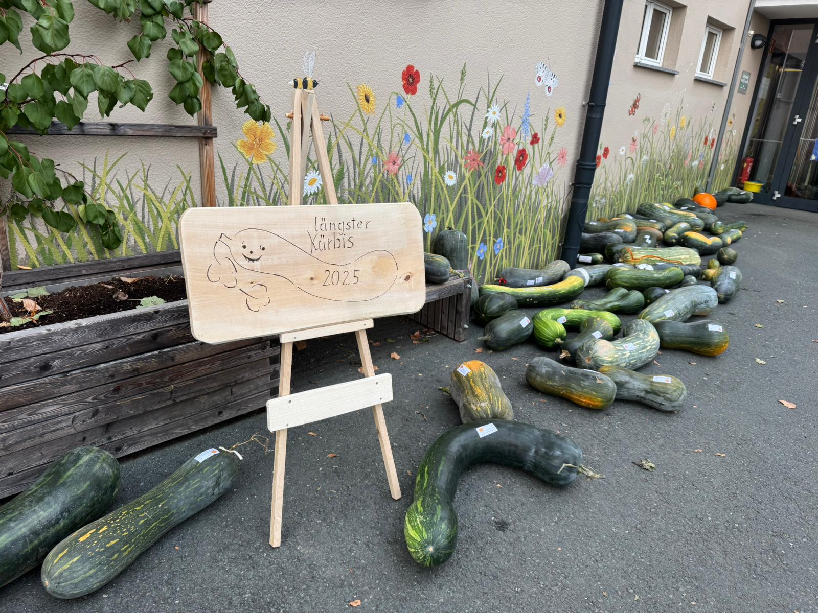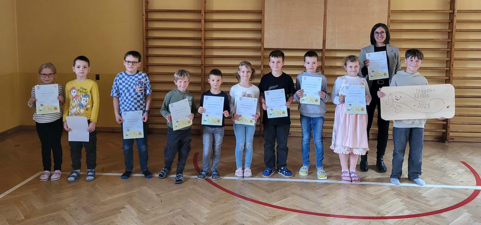 Am 6. Oktober holten wir unser abgesagtes Kürbisfest in der Schule nach. Im Turnsaal wurden herbstliche Lieder und Gedichte aller Klassen der Schulgemeinschaft präsentiert und alle mitgebrachten Kürbisse abgemessen. Der 1. Platz für den längsten Kürbis 2025 ging an Moritz Köfer – herzliche Gratulation!