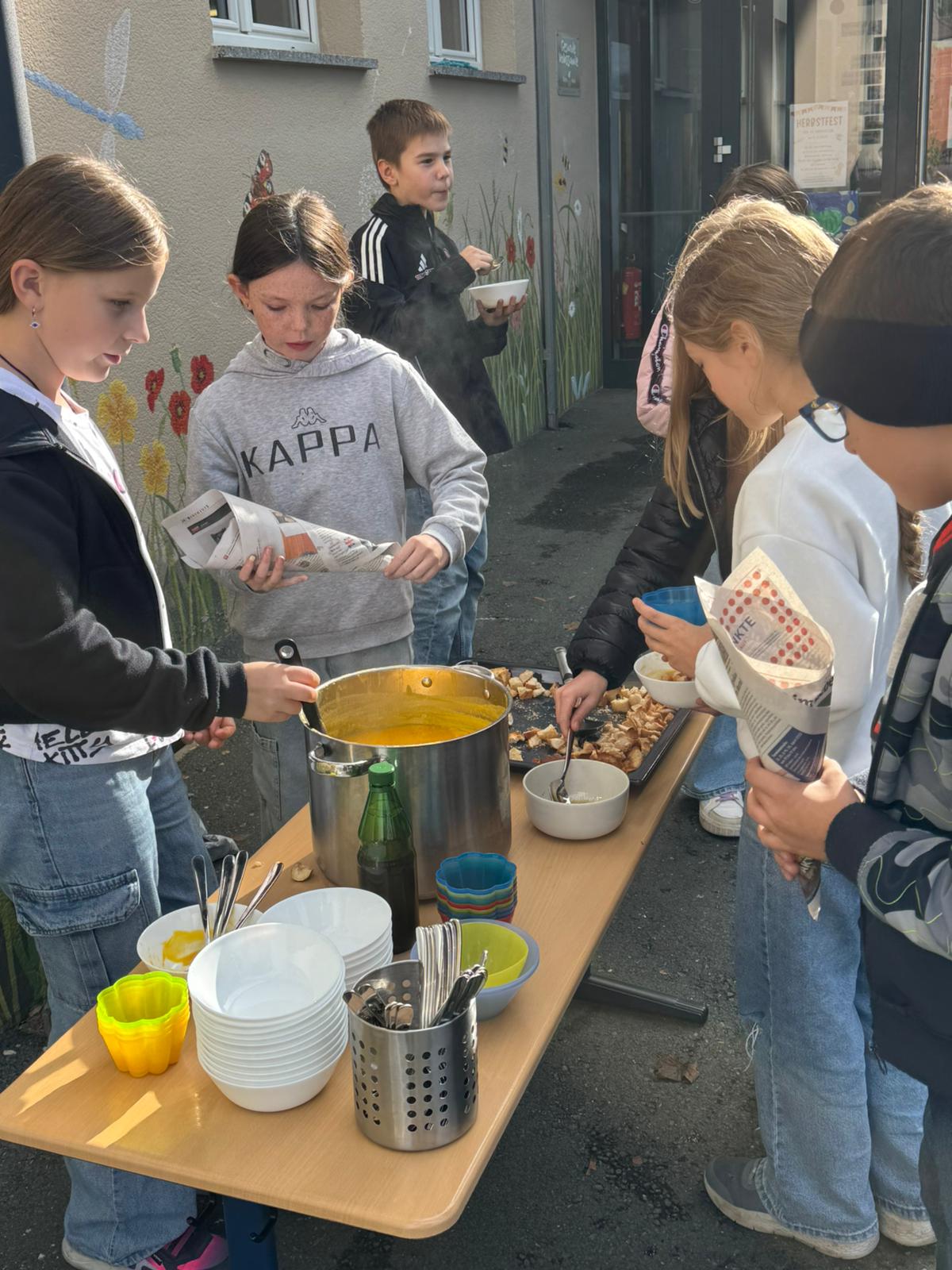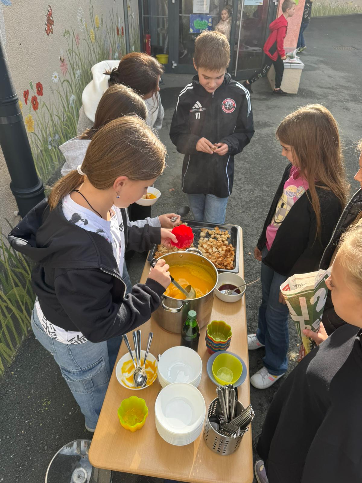 Am 10. Oktober fand unser alljährliches Kastanienfest statt. Heuer gab es zu Willis gebratenen Kastanien auch selbst gemachte Kürbissuppe der vierten Klassen und Frau Jukic. Vielen Dank!