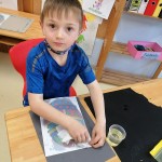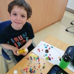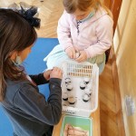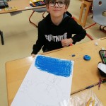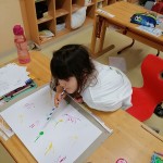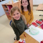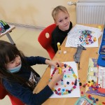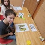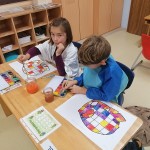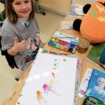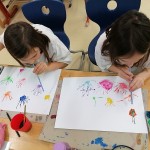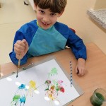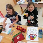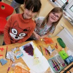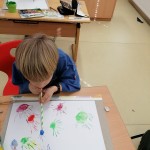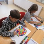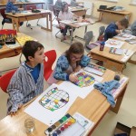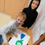 Die kleinen Künstler sind konzentriert dabei, ihren Elmar mit Wasserfarben zu gestalten.