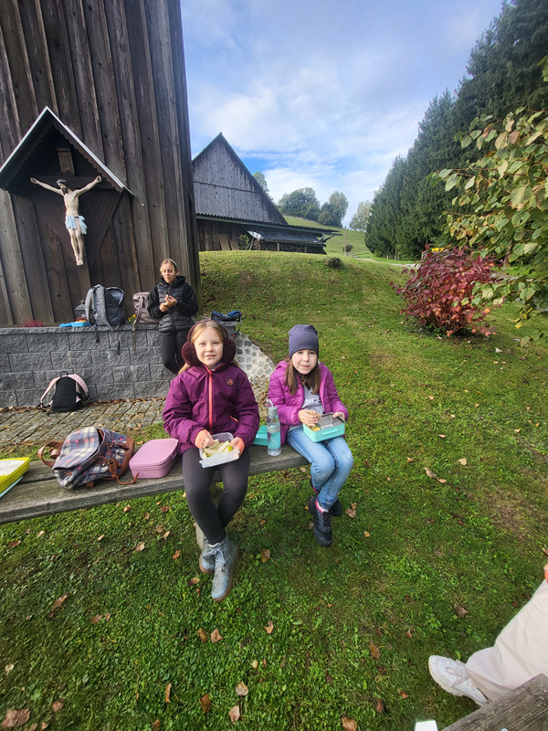 Am 9. Oktober hat die 3. Klasse die letzten warmen Sonnenstrahlen zum Wandern ausgenutzt. Los ging es Richtung Kirche, dann über den Karberg hinauf bis zum Eichberg und wieder zurück. Auf dem Weg wurden viele Kastanien gesammelt, die dann am Freitag beim Kastanienbraten gleich verspeist wurden. Einen neuen Streckenrekord haben wir auch aufgestellt: 13 Kilometer!